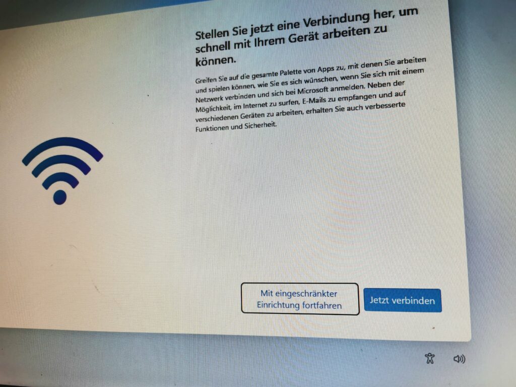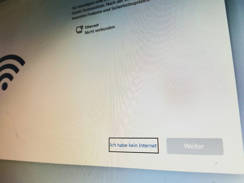 ich empfehle, Windowsinstllationen ohne Netzwerkkabel und ohne WLAN-Verbindung durchzuführen. Dann habt ihr im späteren Installationsverlauf nämlich die Möglichkeit, ein „normales“ lokales Konto einzurichten, statt zu einem Online-Microsoft-Konto gedrängt zu werden: