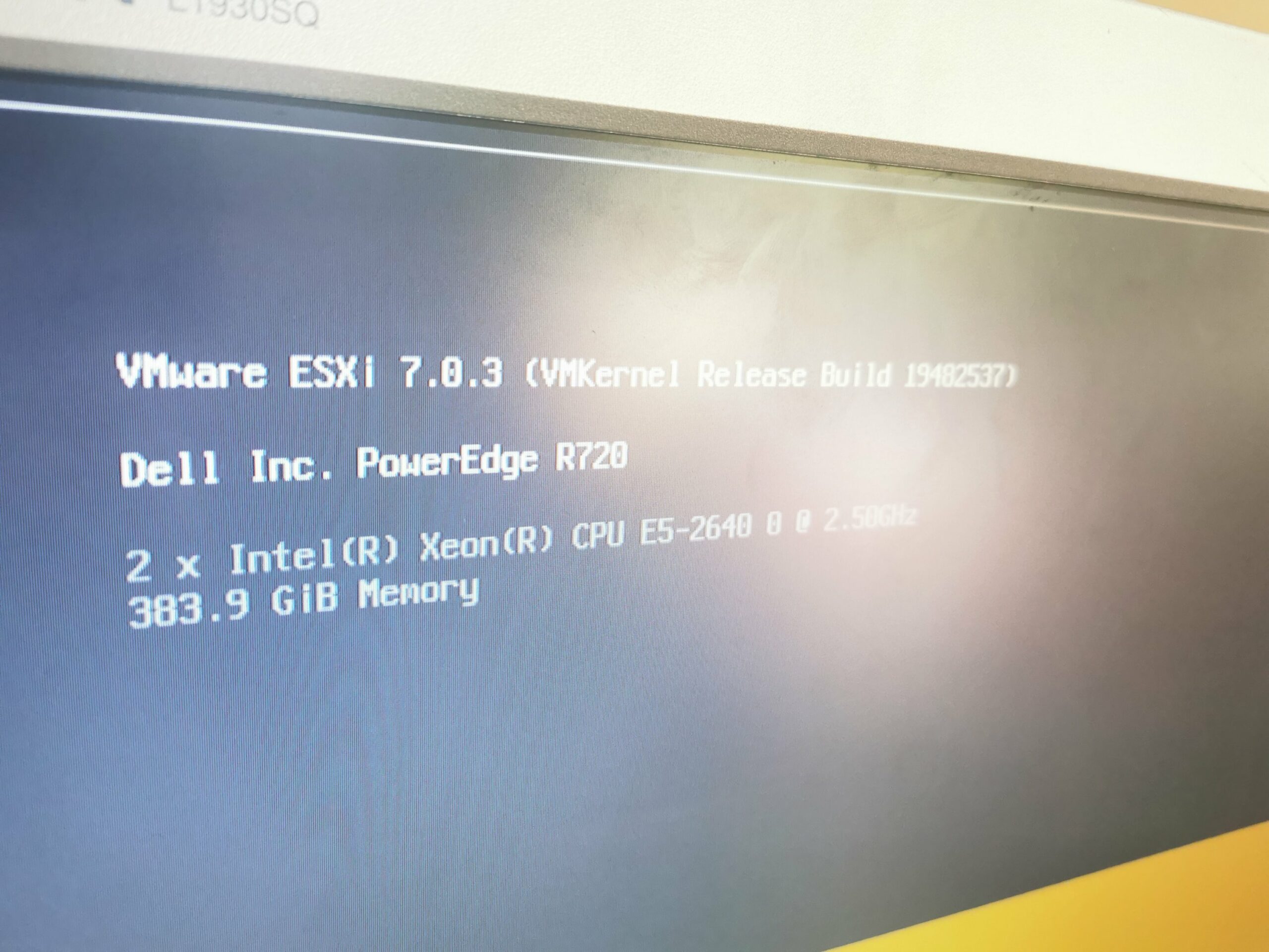 Heute haben wir den Dell-Server mit drei Sata-Platten und nem USB-Stick versehen. Auf den Stick kam die aktuelle esxi-Versiom 7 Punkt irgendwas drauf.