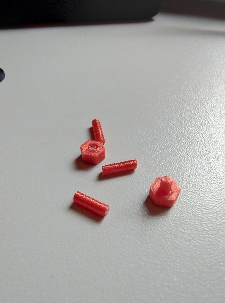 Aber auch passende Schrauben konnten wir ausdrucken. (Auch wenn einige davon beim Schrauben kaputt gingen).
